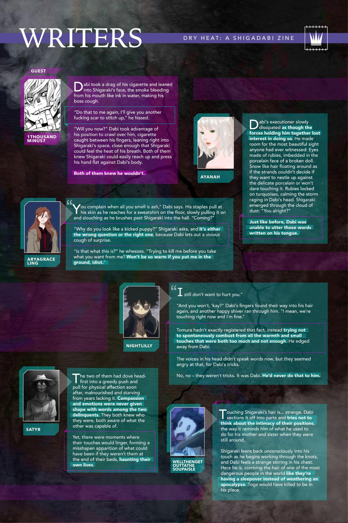 Dry Heat is a for-profit sfw fan zine centering around the Boku no Hero Academia ship Shigadabi.